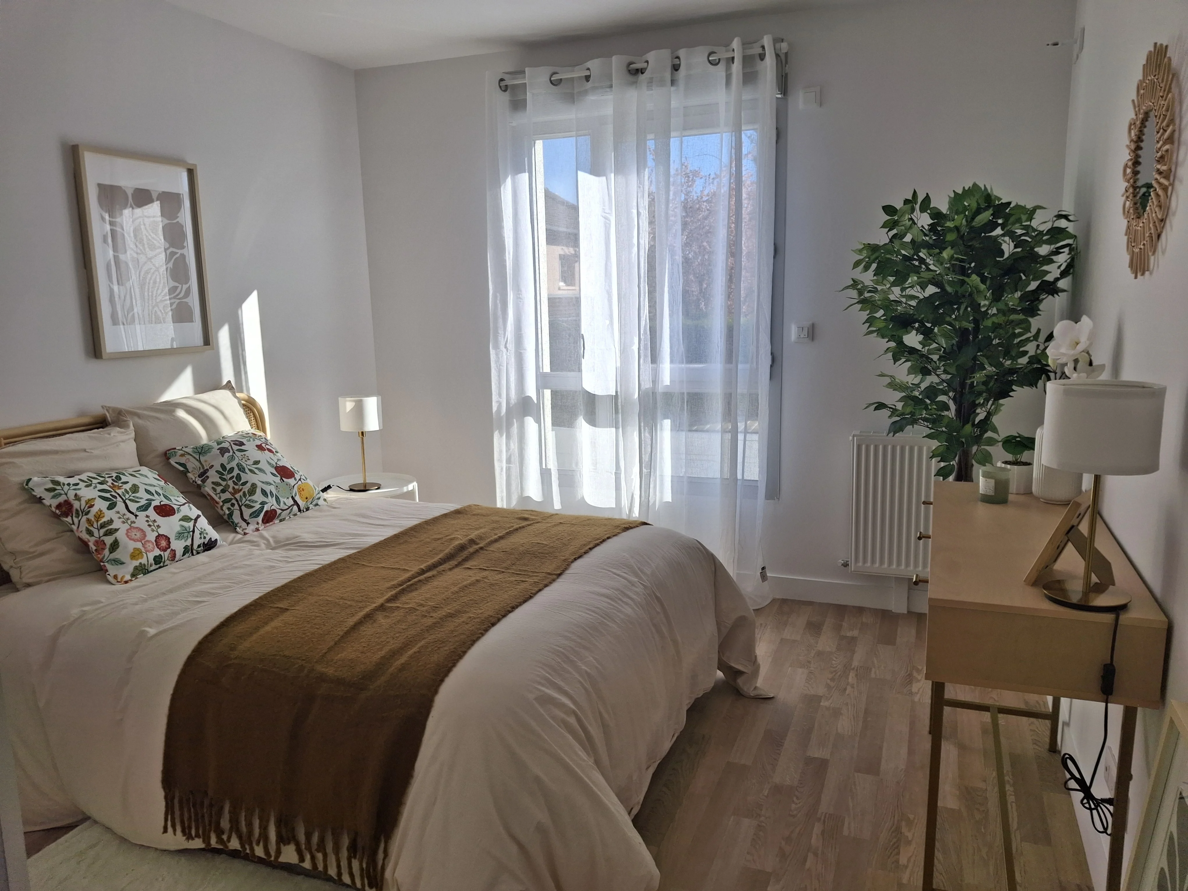La chambre est un havre de paix, pensée pour faciliter vos déplacements et vous offrir un repos de qualité.